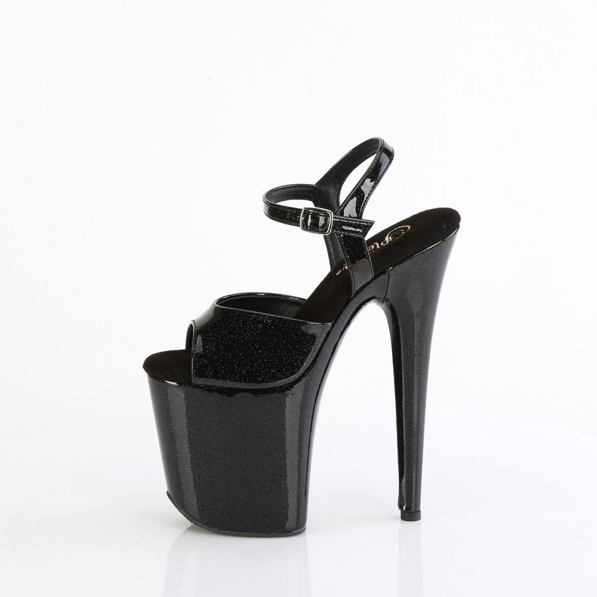 Sandale pentru dansatoare, cu toc inalt si platforma inalta, din sclipici. Brand Pleaser.
