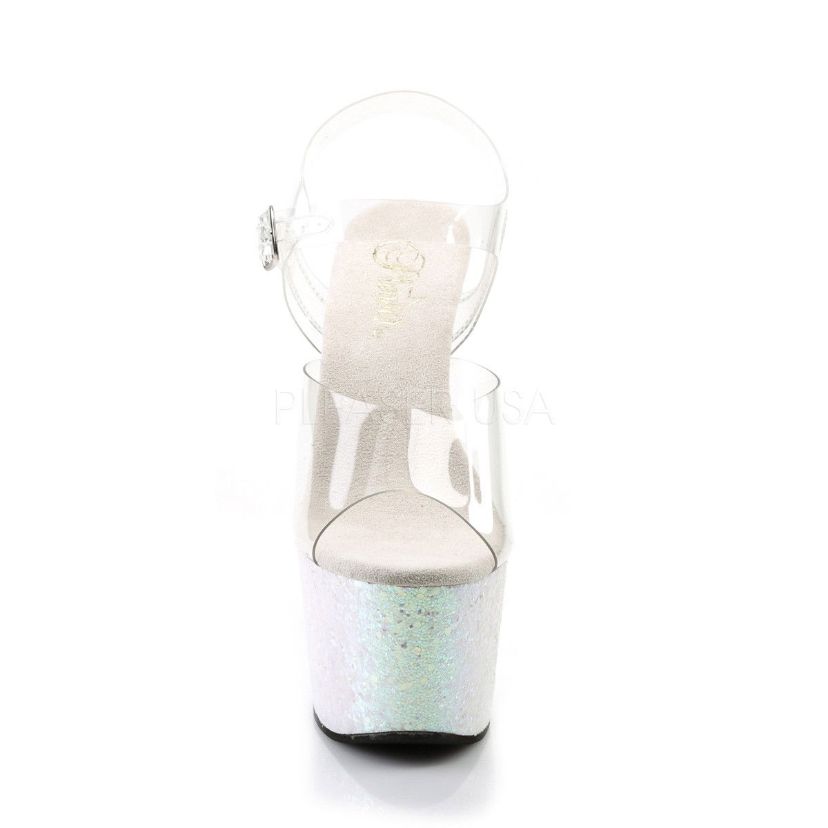 Sandale cu platforma inalta, cu sclipici si silicon deasupra. Sandale comode, cu piele intoarsa pe talpa