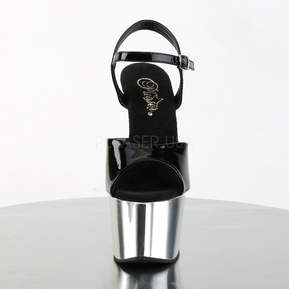 Sandale sexy, comode, cu talpa platforma argintie cromata, cu piele intoarsa pe talpa. Sandale pentru club, pentru dansatoare
