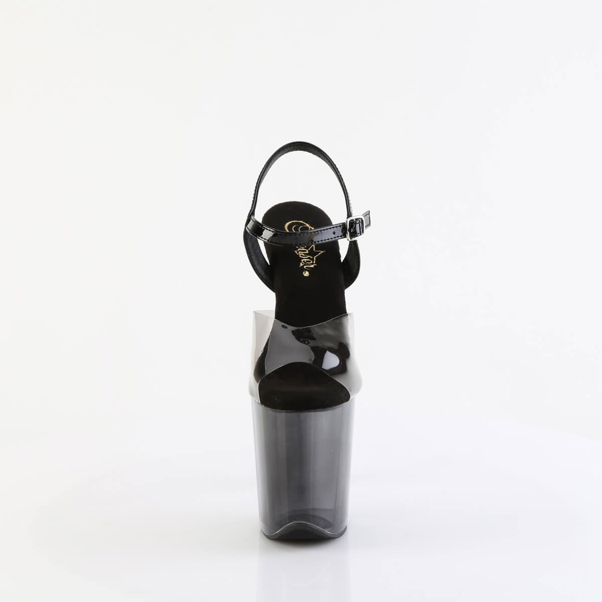 Designul combină o baretă neagră lucioasă cu o platformă și un toc semi-transparent, creând un contrast puternic, perfect pentru lumina scenei sau a reflectoarelor din club. Talpa este adaptată pentru dans, oferind aderență optimă în floorwork, static sau acrobații ușoare. Brățara reglabilă de la gleznă stabilizează piciorul și permite susținere chiar și în rutine complexe.