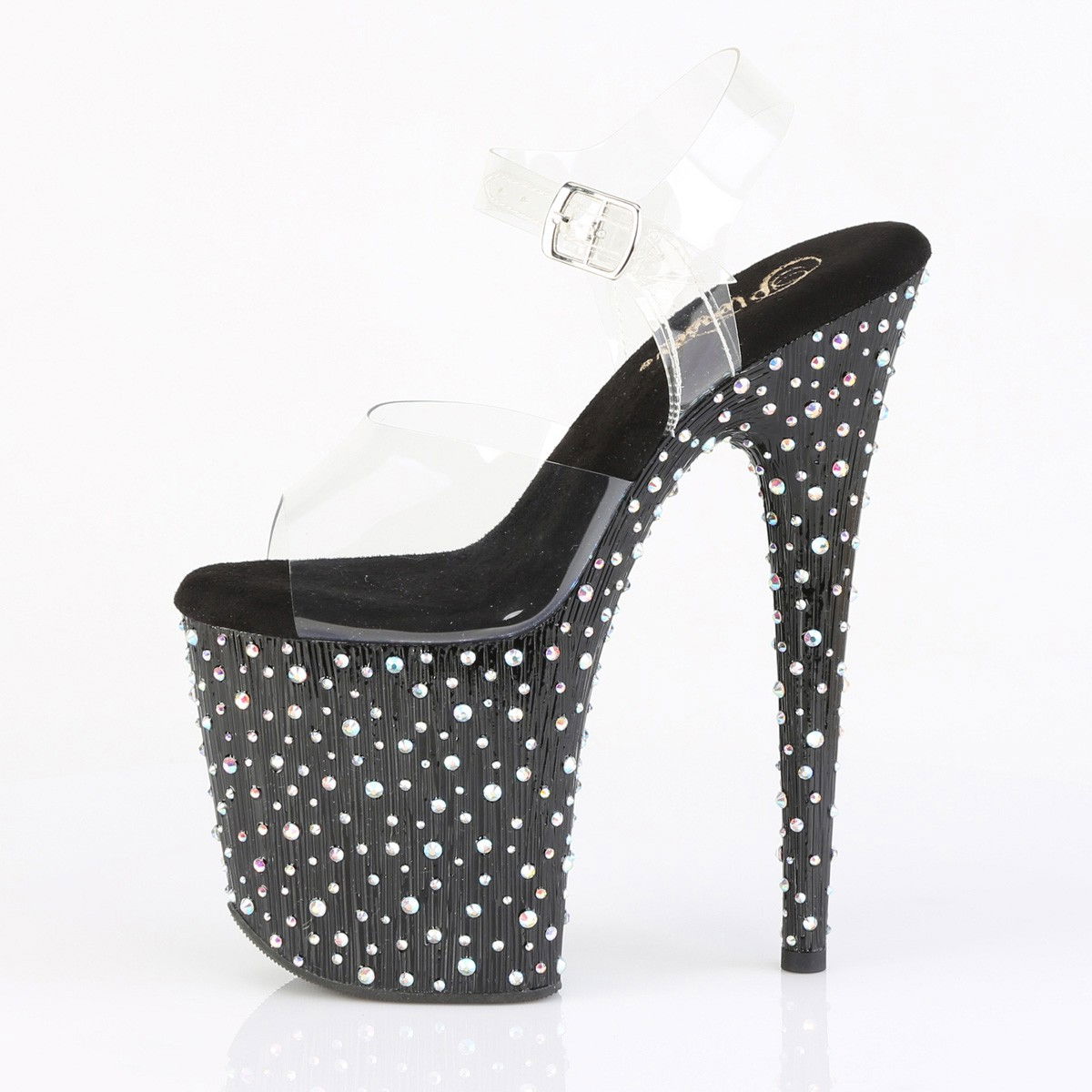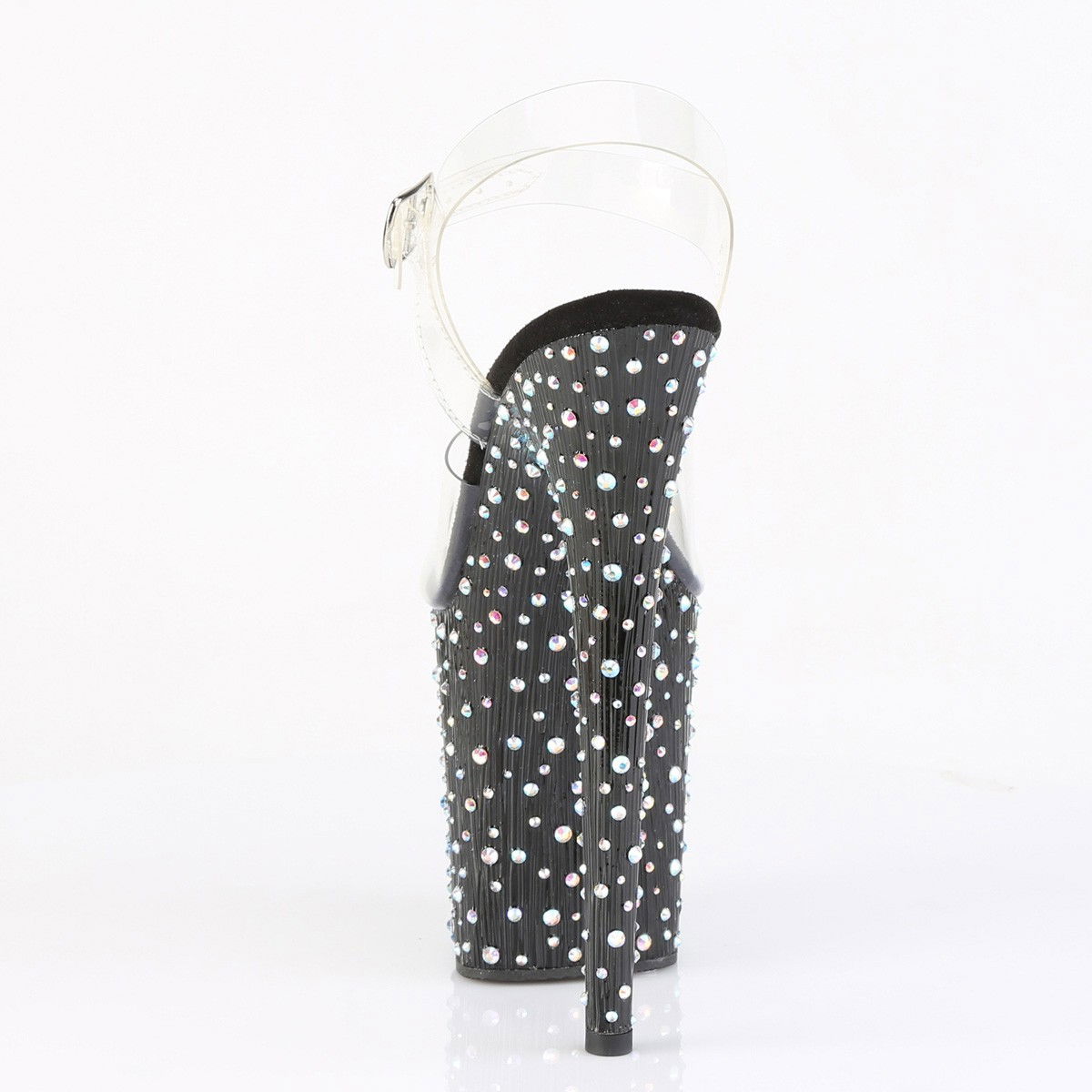 Sandale cu toc inalt, cu pietricele pe platforma si cu imitatie de piele inroarsa pe talpa. Sandalele sunt perfecte pentru dans la bara. Poarta-le si intreaga ta atitudine se schimba. Cu toc de 20 cm si platforma de 10 am, aceste sandale iti vor da increderea ca totul va fi super in dansul la bara. Brand Pleaser USA