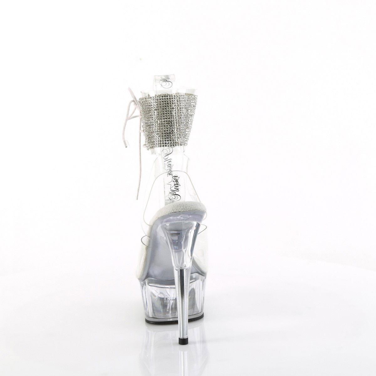 Sandale pentru dansatoare, cu toc inalt, cu bareta la glezna din pietricele stralucitoare. Brand Pleaser.