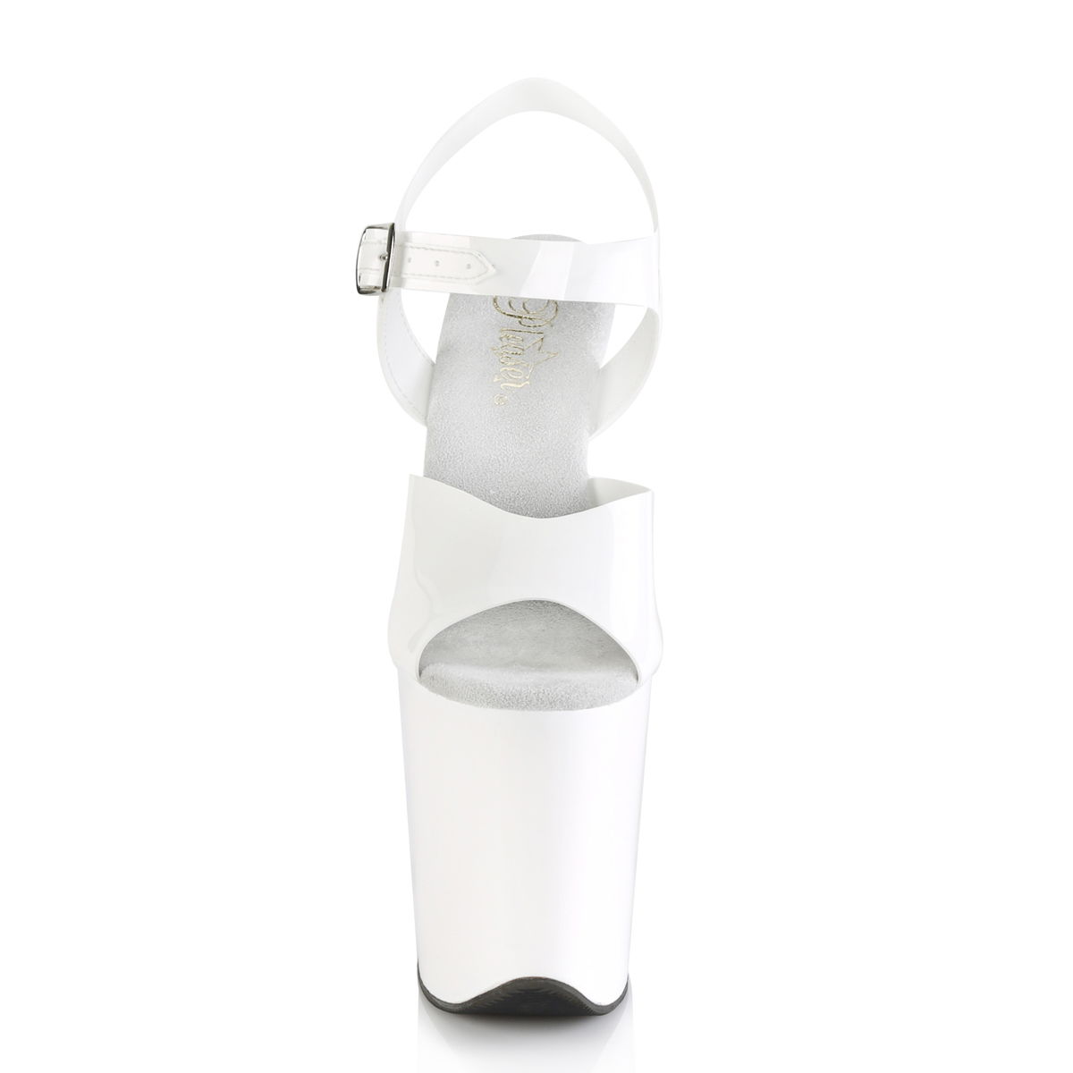 Sandale cu toc inalt de 20.3 cm si platforma de 10 cm, cu silicon de culoarea platformei. Pe talpa sandalele albe cu toc inalt au imitatie de piele intoarsa ca sa nu alunece piciorul. Sandalele sunt pentru pole dance, dansatoare la bara, pentru videochat si sedinte foto