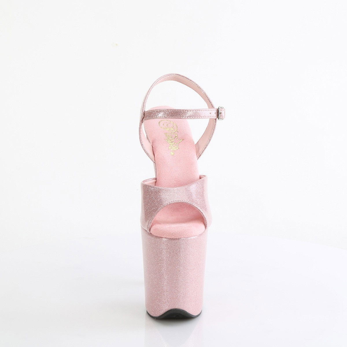 Sandale pentru dansatoare, cu toc inalt si platforma inalta, din sclipici. Brand Pleaser.
