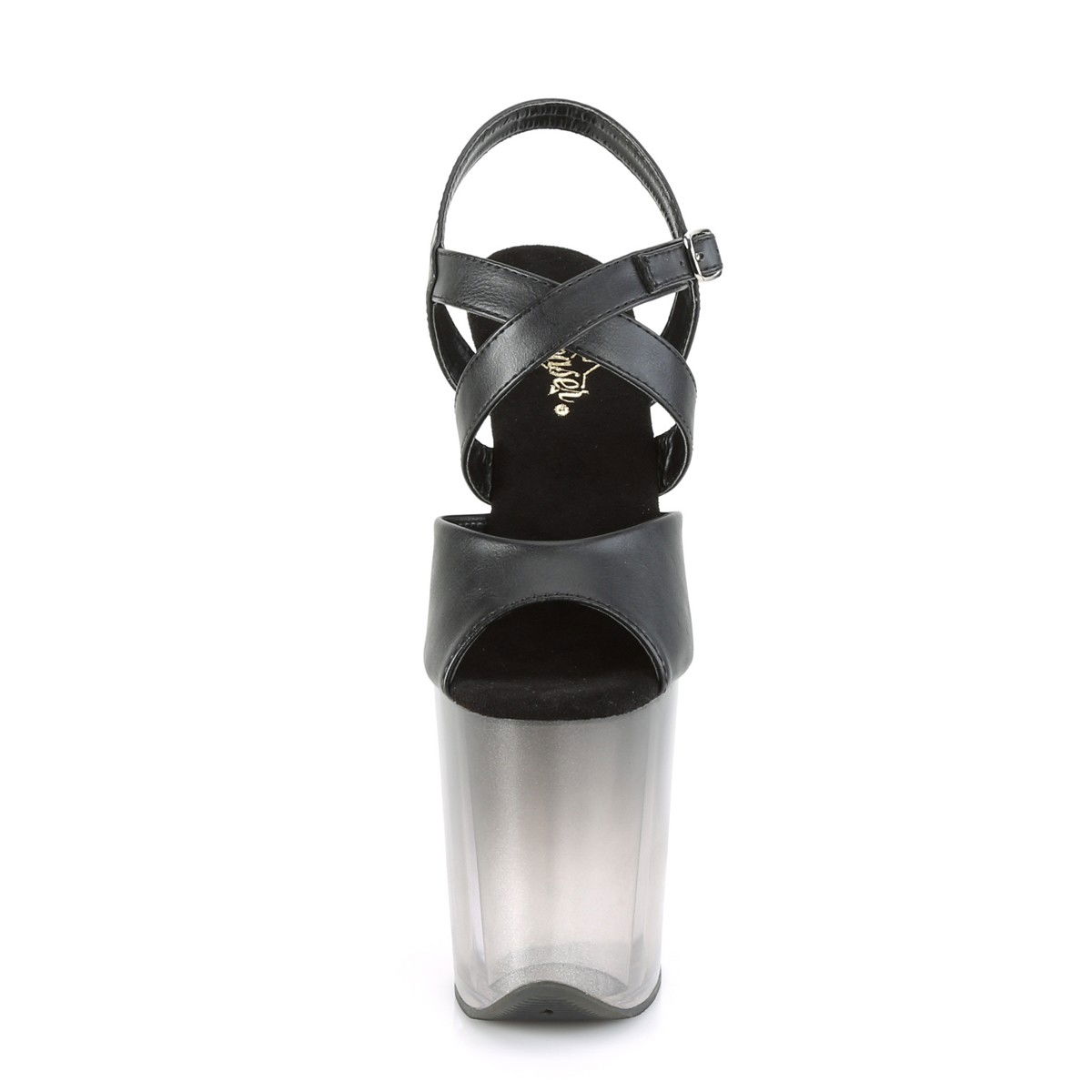 Sandale cu toc inalt de 20.3 cm si platforma semitransparenta, cu piele intoarsa pe talpa si piele ecologica in partea superioara. Brand Pleaser