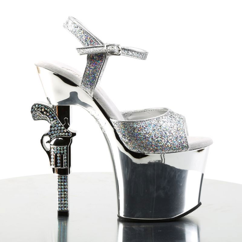 Pleaser USA Sandale cu toc si platforma Pleaser R-709G, glitter argintiu