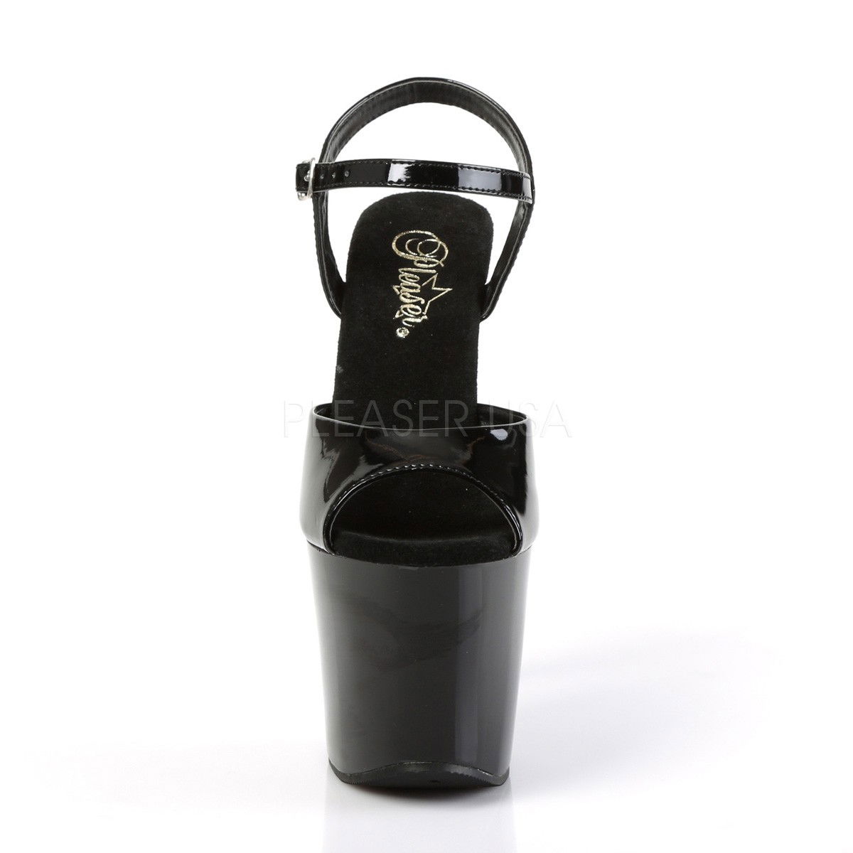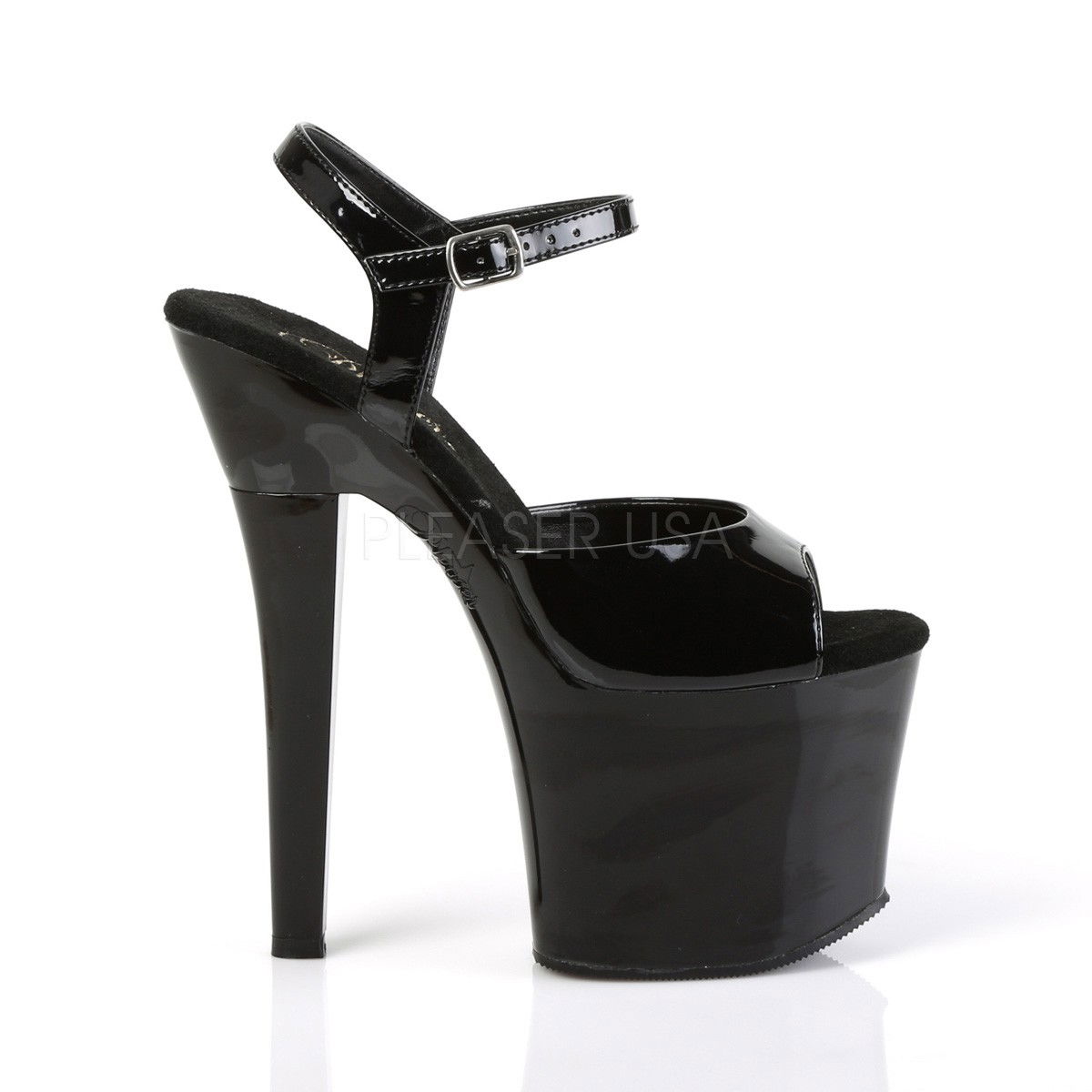 Sandale cu toc inalt si platforma inalta, din lac cu piele intoarsa pe talpa. Brand Pleaser