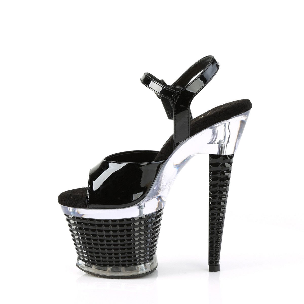 Sandale pentru dansatoare, cu toc inalt si platforma inalta texturate. Brand Pleaser.