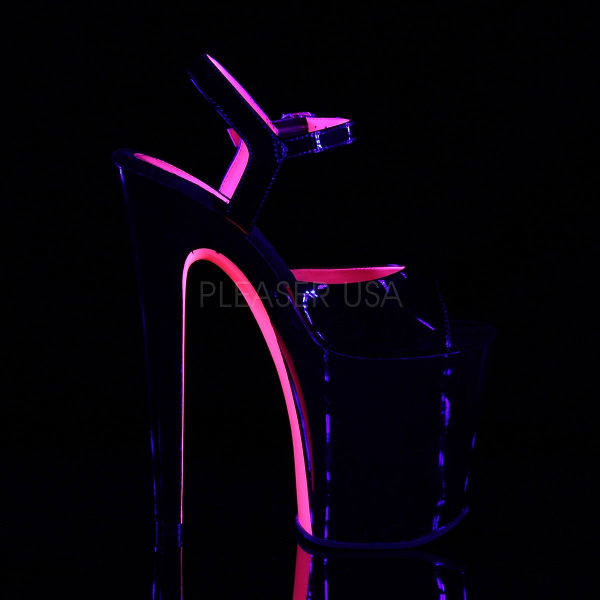 Sandale cu platforma si toc inalt, culoare neon, cu piele intoarsa pe talpa. Sandale de club, pentru animatoare si dansatoare