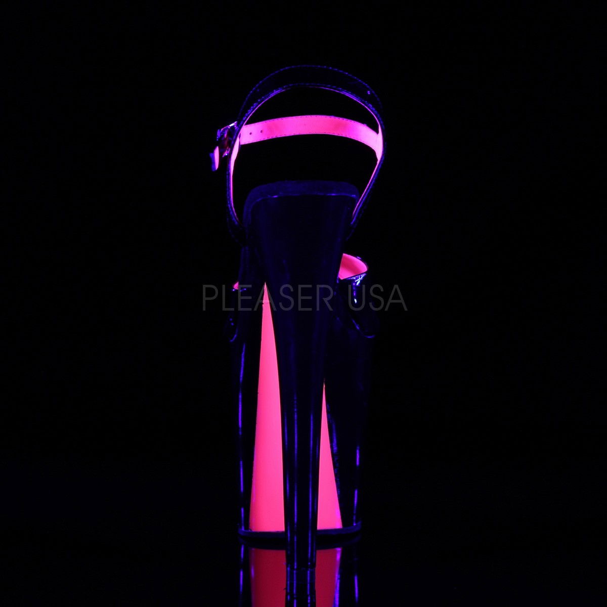 Sandale cu platforma si toc inalt, culoare neon, cu piele intoarsa pe talpa. Sandale de club, pentru animatoare si dansatoare. Papuci dans la bara