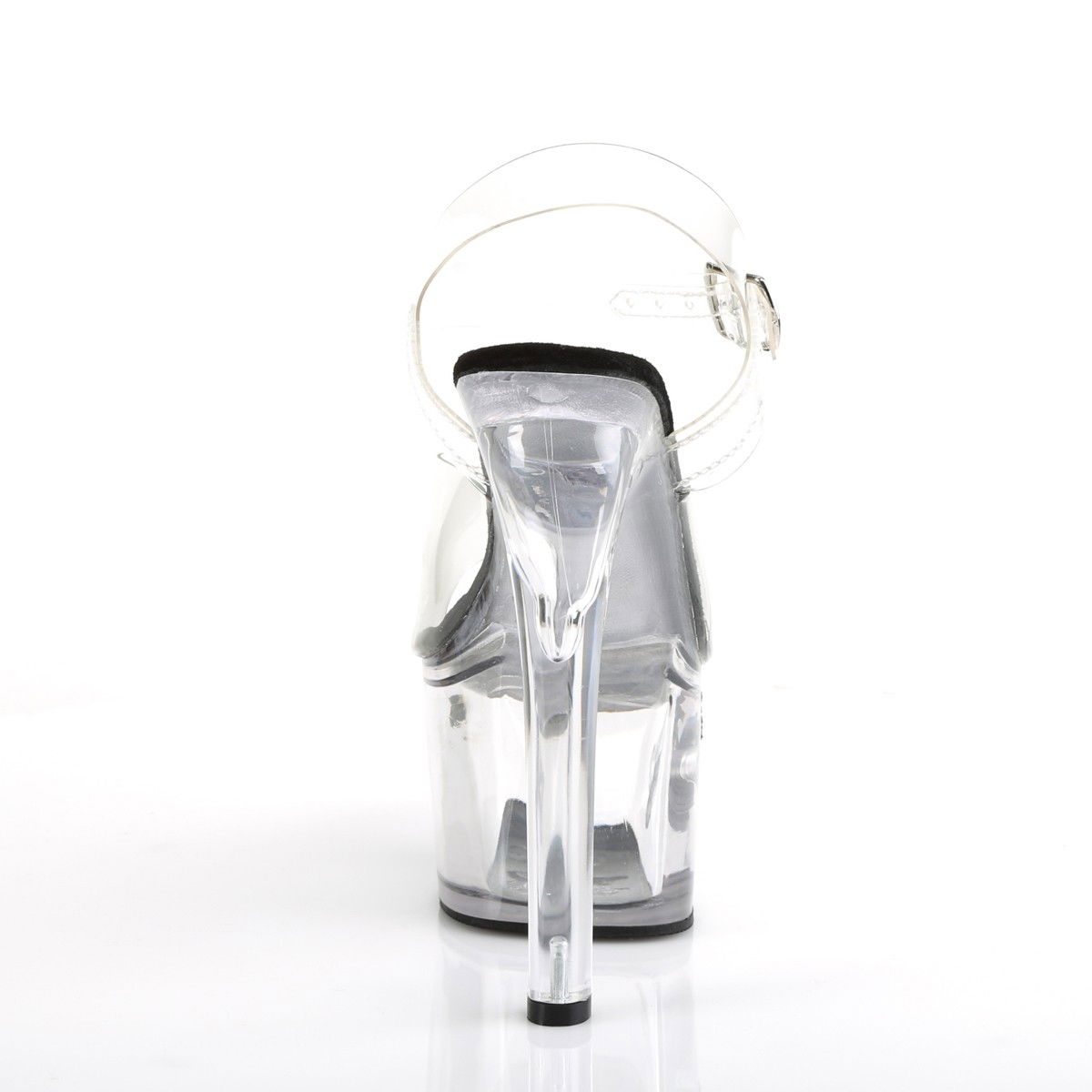 Sandale cu toc transparent si cu platforma inalta pentru dansatoare. In platforma se poate baga tipsul pentru dansatoare. Sandale din silicon, cu imitatie de piele intoarsa pe talpa. Brand Pleaser USA