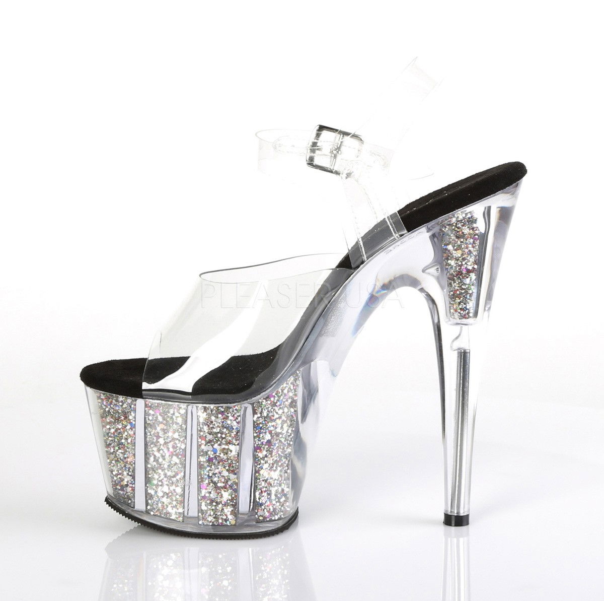 Sandale dansatoare, elegante, cu bareta din silicon si platforma cu confeti, cu piele intoarsa pe talpa