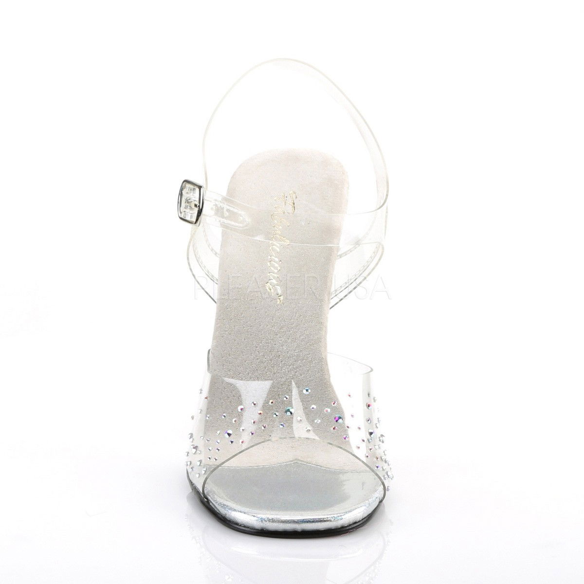 Sandale transparente, de gala, comode, elegante si sexy. Sandalele sunt foarte potrivite pentru concursurile de bikini fitness sau culturism. Tocul are o inaltime de 11,47 cm, iar pentru platforma producatorul, Pleaser USA nu da nici o specificatie. Au bareta din silicon. Pe talpa sandalele au piele intoarsa pentru ca piciorul sa nu transpire si sa alunece.