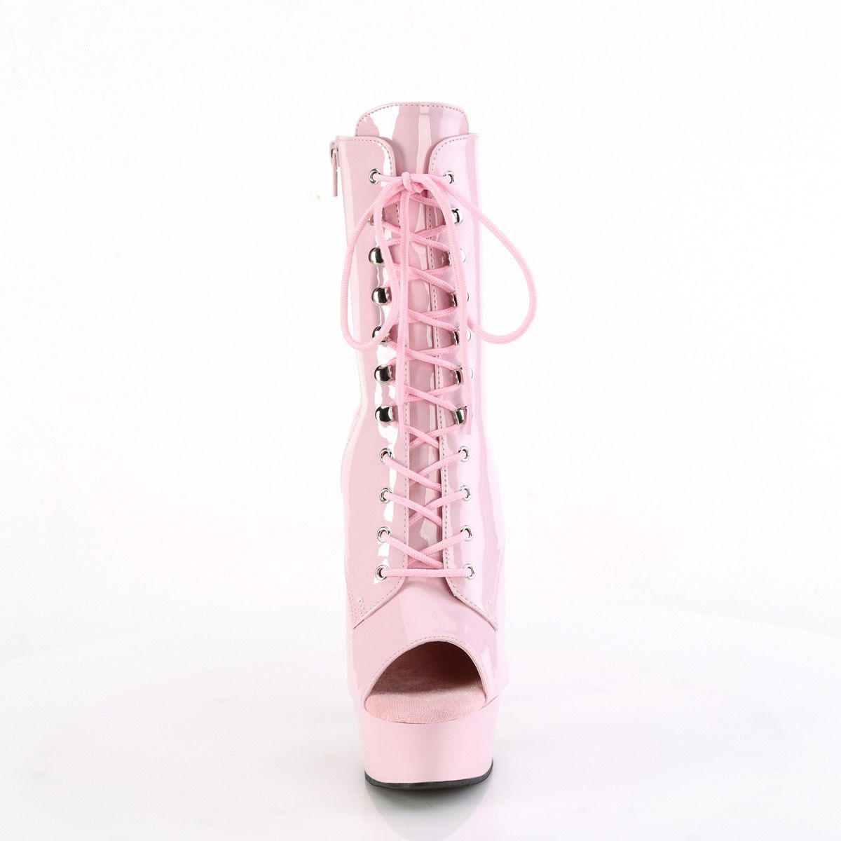 Botine pentru dansatoare, cu toc inalt si platforma inalta, cu varful decupat, cu fermoar in interior. Botine sexy, comode. Brand Pleaser.