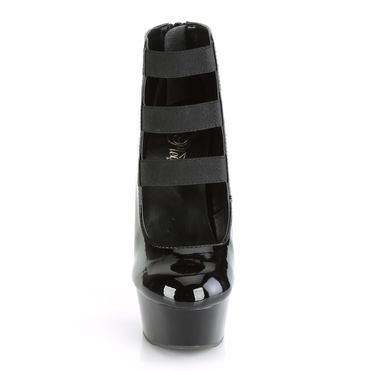 Botine cu toc inalt, decupate in fata, cu benzi elastice. Botine comode, elegante, brand Pleaser
