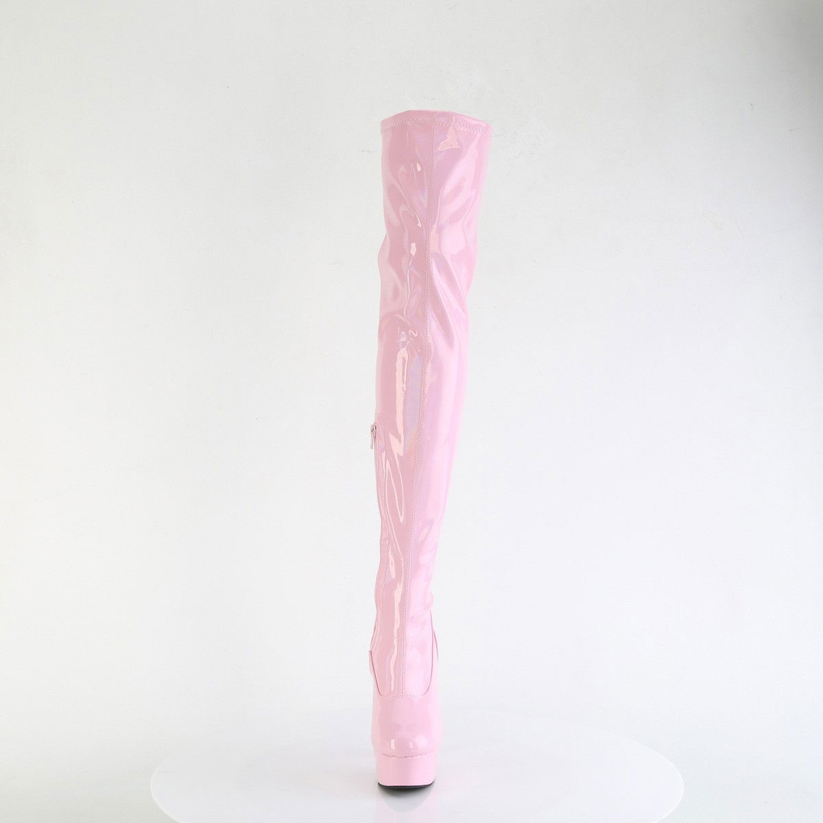 Cizme elegante, sexy, cu platforma, peste genunchi, negru, lac, holograma. Brand Pleaser.