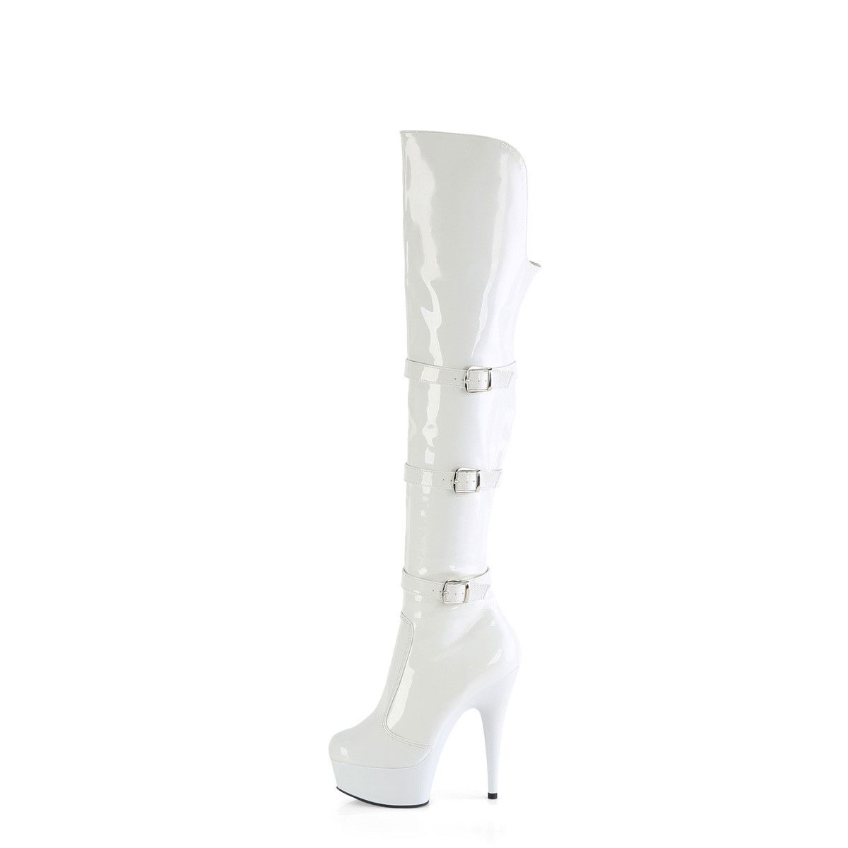 Cizme pentru dansatoare, peste genunchi, cu 3 barete, cu fermoar pe interior, din lac. Brand Pleaser.