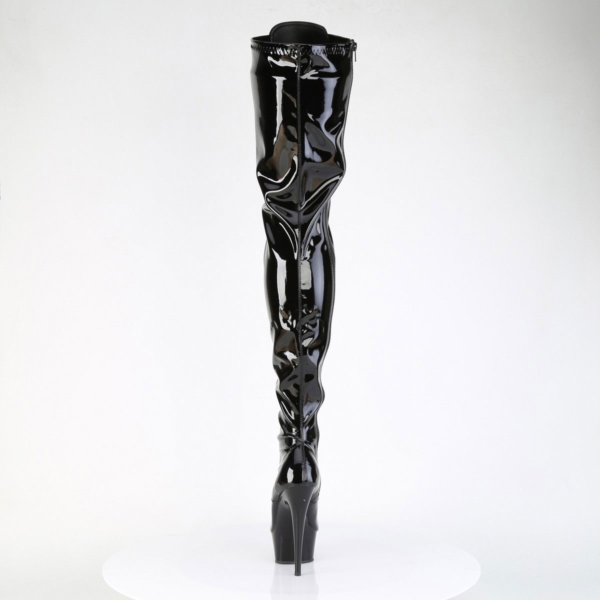 Cizme peste genunchi pentru dansatoare, cu toc inalt si platforma inalta, cu fermoar pe interior. Brand Pleaser.