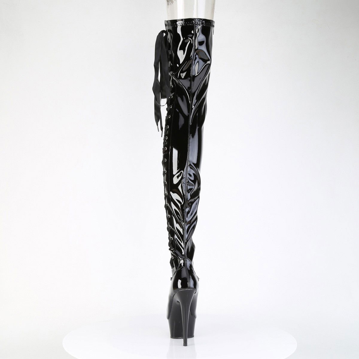 Cizme peste genunchi pentru dansatoare, cu toc inalt si platforma inalta, cu fermoar pe interior. Brand Pleaser.