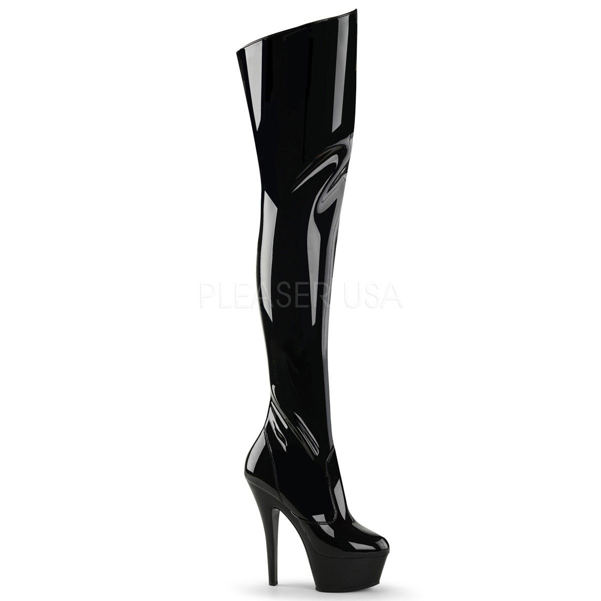Cizme sexy, elegante, marimi mari, cu platforma medie. Cizmele au fermoar pe interior. Cizme din lac. Cizme negre. Brand Pleaser