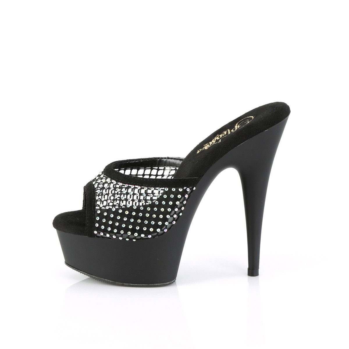 Saboti sexy, platforma medie, din plasa cu pietricele stralucitoare, eleganti, marimi mari. Brand Pleaser.