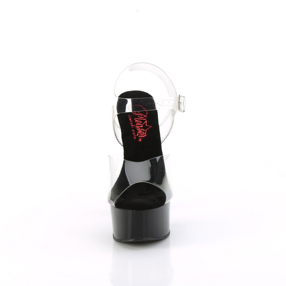Saboti pentru dansatoare, cu toc inalt si platforma inalta, cu talpa din piele intoarsa. Saboti comozi. Brand Pleaser.