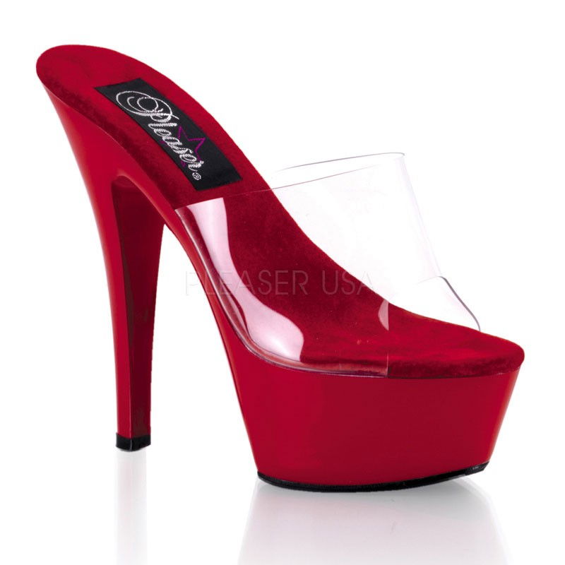 Saboti sexy, eleganti, cu platforma, cu toc, marimi mari. Saboti rosii. Brand Pleaser