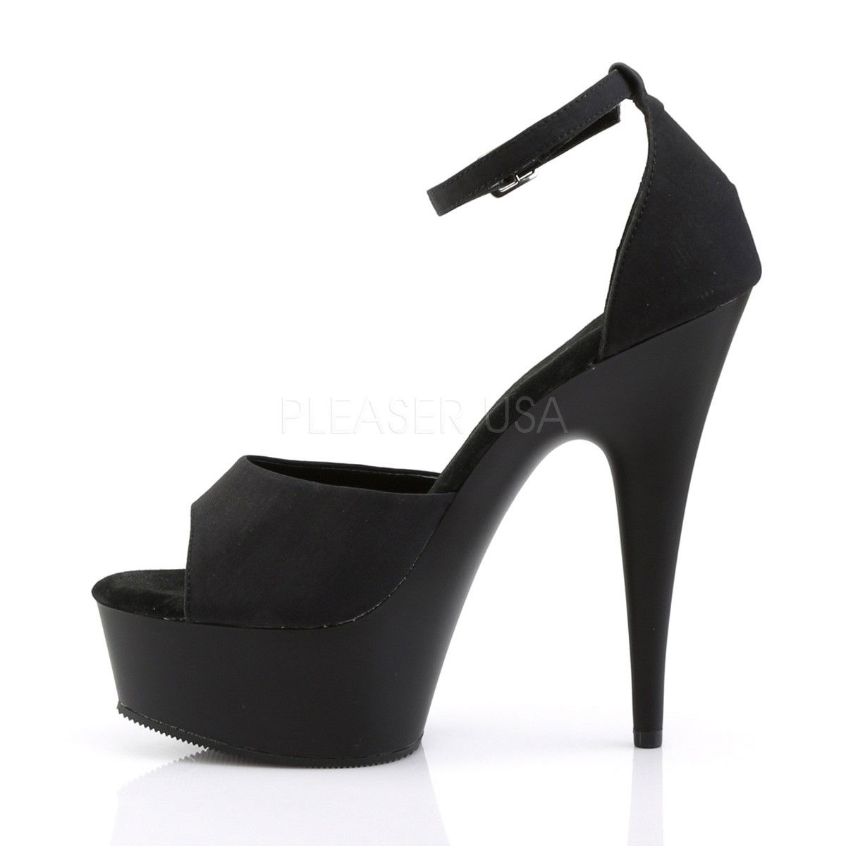 Sandale cu toc inalt si platforma medie, cu bareta pe glezna si varf decupat. Brand Pleaser