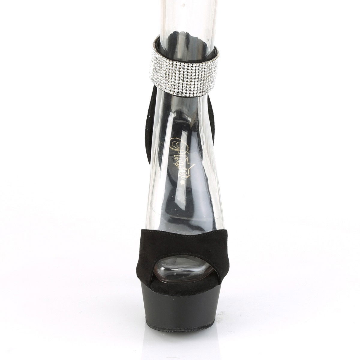 Sandale cu toc inalt de 15.2 cm si platforma medie, de 4.45 cm. Sandalele sunt din imitatie de piele intoarsa si au bareta pe glezna cu pietricele.