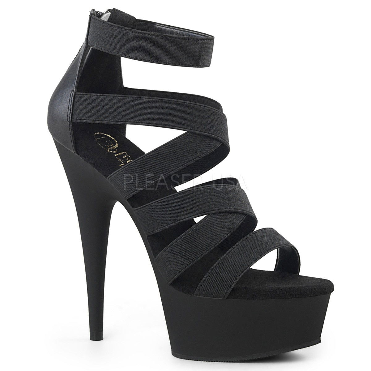 Sandale cu platforma medie, cu barete din elastic lat, dansatoare, club. Brand Pleaser