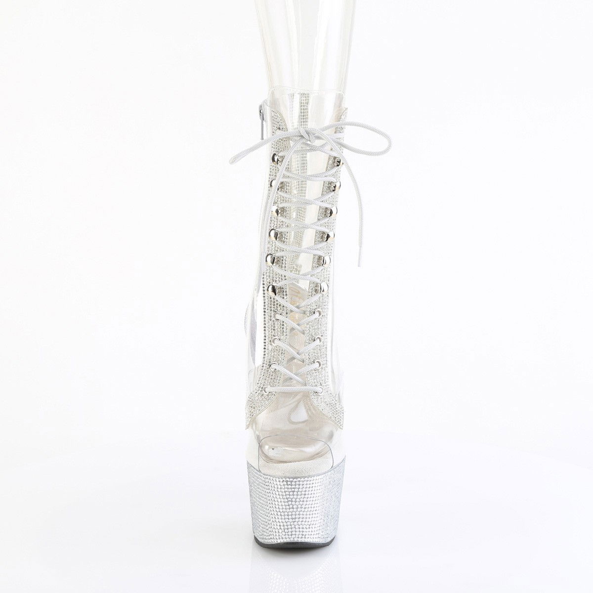 Botine elegante cu toc de 17.8 cm si platforma de 7 cm, comode, perfecte pentru spectacole pe scena. Botinele au pietricele montate manual. Brand Pleaser USA