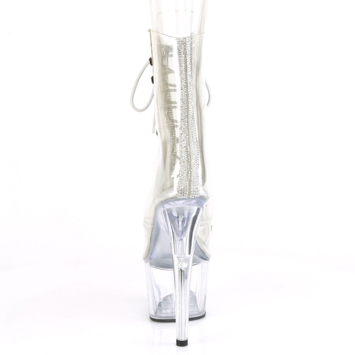 Botine elegante, transparente, cu varf decupat, platforma inalta, cu toc inalt, de club dansatoare. Brand Pleaser