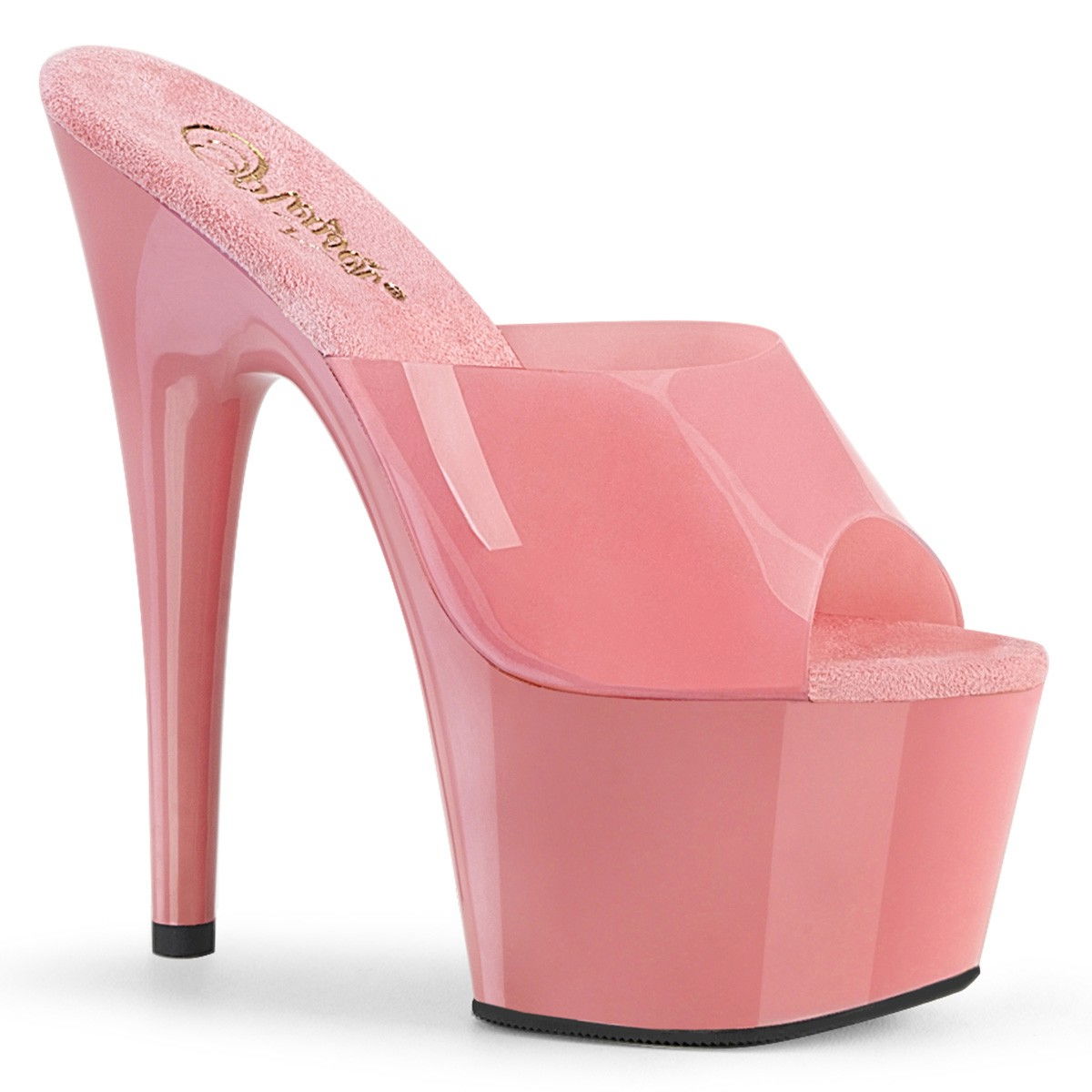 Saboti cu toc inalt de 17.8 cm si platforma de 7 cm. Sabotii sunt din silicon colorat, iar pe talpa au imitatie de piele intoarsa pentru ca piciorul sa nu transpire si sa alunece. Sabotii sunt pentru dans la bara, poledance, dansatoarele preferandu-i pentru o tinuta speciala
