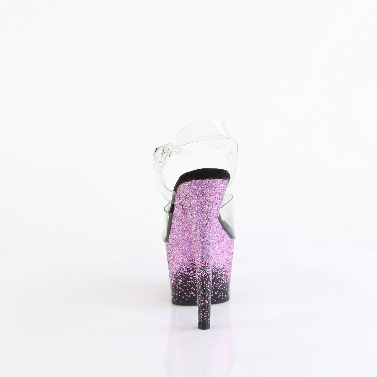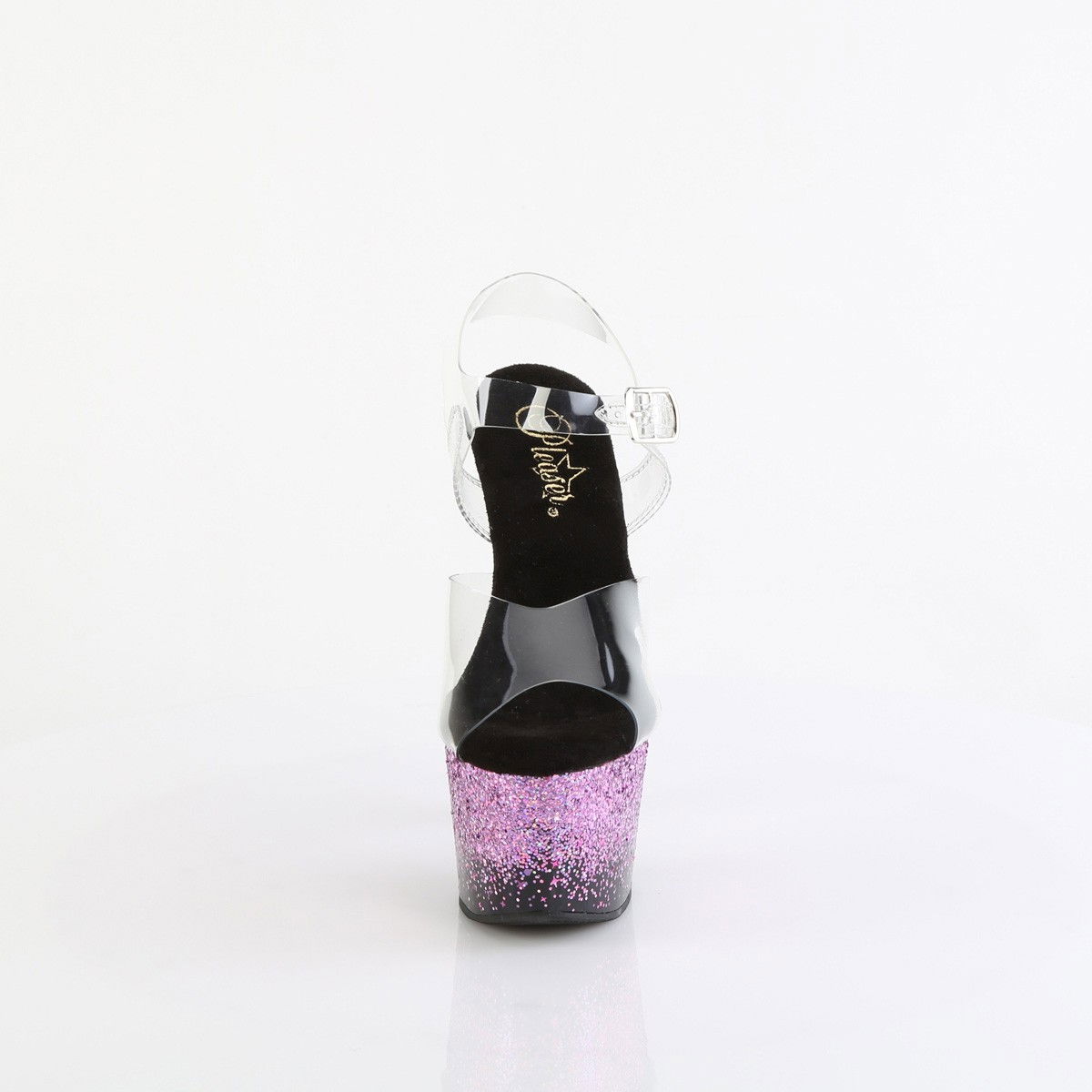 Sandale pentru dansatoare, stralucitoare, cu toc inalt si platforma inalta. Pe talpa au piele intoarsa ca sa nu alunece piciorul. Brand Pleaser.