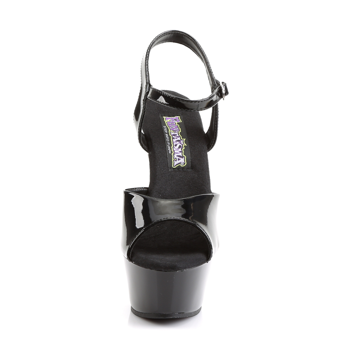 Sandale sexy, elegante si comode, cu platforma de 4.45 cm si toc de 15.2 cm. Sandale din lac, de culoare neagra, perfecte pentru scena