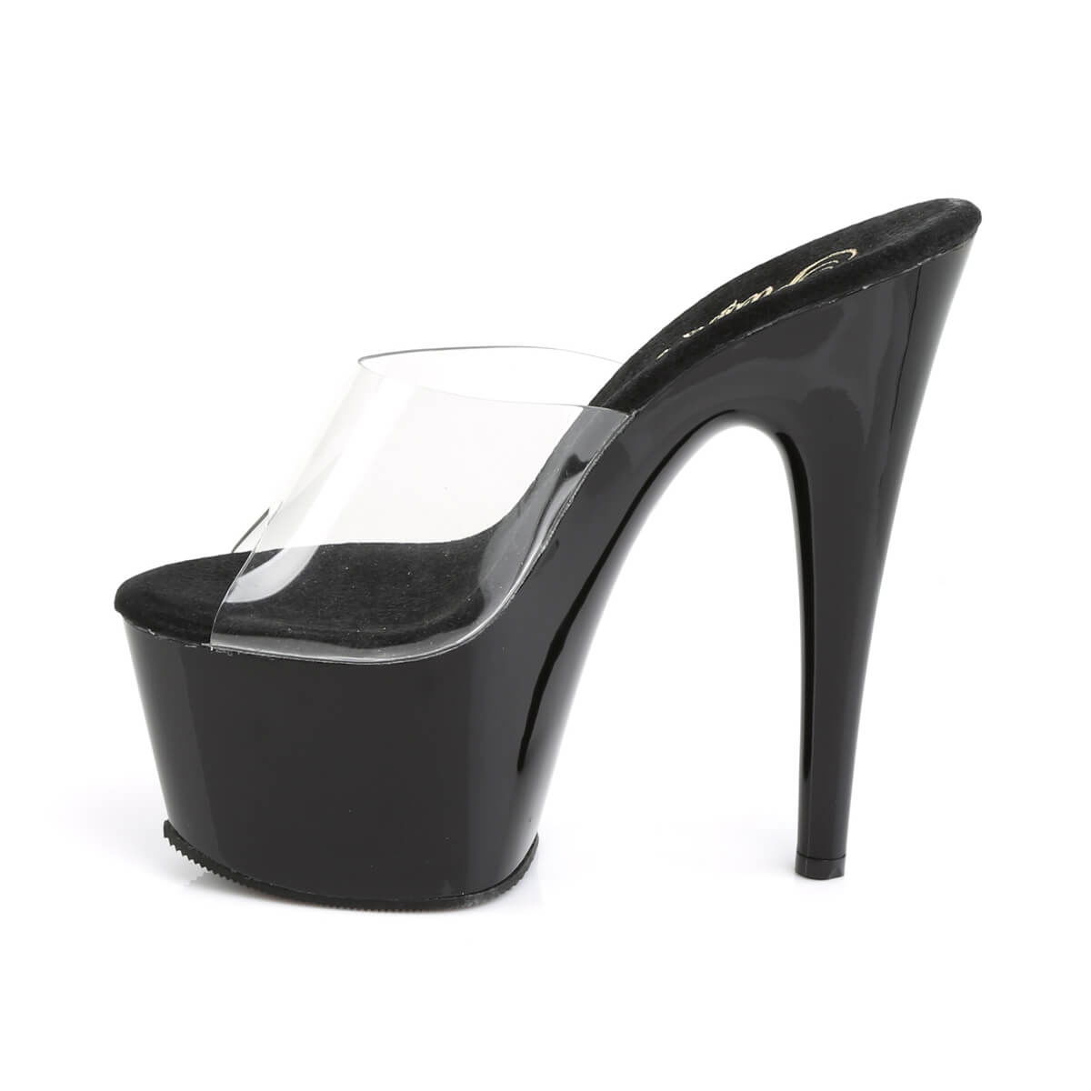 Descoperă sabotii profesioniști ADORE 701 de la Pleaser USA, alegerea nr. 1 pentru pole dance și spectacole de club. Cu un toc de 18 cm (7 inch) și o platformă stabilă de 7 cm, acești saboti sexy oferă echilibrul perfect între estetică și performanță. Designul minimalist cu baretă transparentă alungește piciorul, fiind ideali pentru dansatoarele care caută un look impecabil pe scenă.